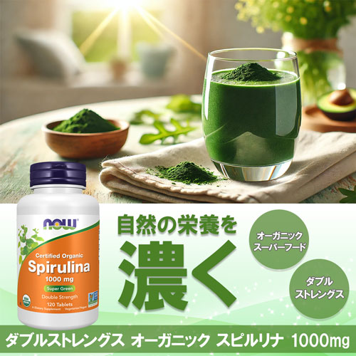 ダブルストレングス オーガニック スピルリナ 1000mg Spirulina Double Strength Organic 120粒 NOW ナウの商品説明