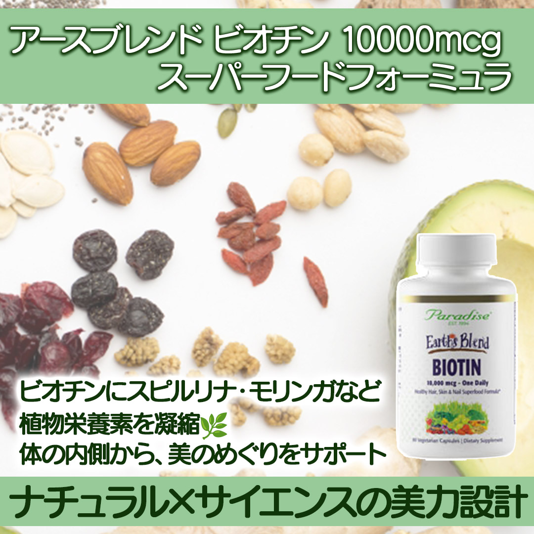 アースブレンド ビオチン 10000mcg スーパーフードフォーミュラ 90粒 Earths Blend-Biotin Paradise Herbs パラダイスハーブの商品説明